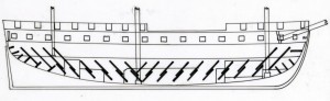 A truss of ‘diagonal riders_ stiffened the hull