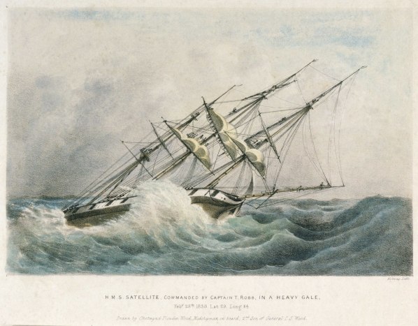 https://en.wikipedia.org/wiki/HMS_Satellite_(1826)#/media/File:H.M.S._Satellite_commanded_by_Captain_T._Robb_in_a_heavy_gale,_Feby_28th_1838._Lat_29._Long_64._Drawn_by_Chetwynd_Plowden_Wood,_Midshipman_on_board,_2nd_son_of_General._I._S._Wood_RMG_PU6136.tiff